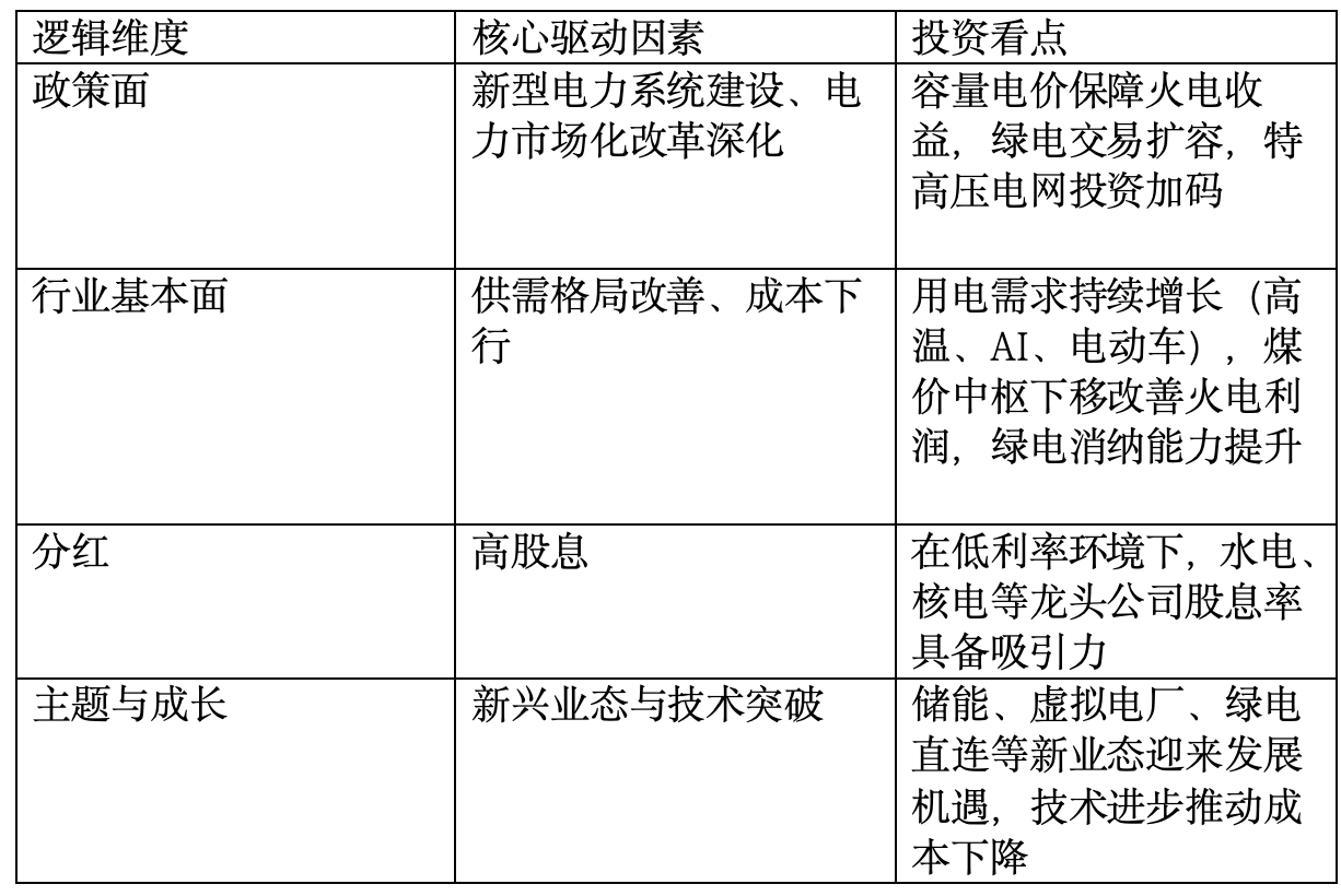 当前电力板块的投资逻辑,正从传统的周期属性,向“政策驱动转型+稳定高股息”的双重主线切换。它不仅仅是在投资“发电”本身,更是在投资中国能源结构转型的国家战略。