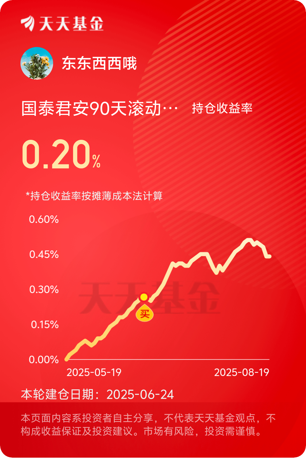 收益还行,继续拿着吧,感觉还算稳$国泰君安90天滚动持有中短债A$ #晒收益#