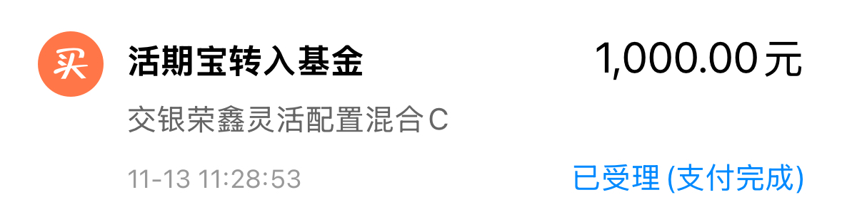 我加1000元 $交银荣鑫灵活配置混合C(OTCFUND|019514)$