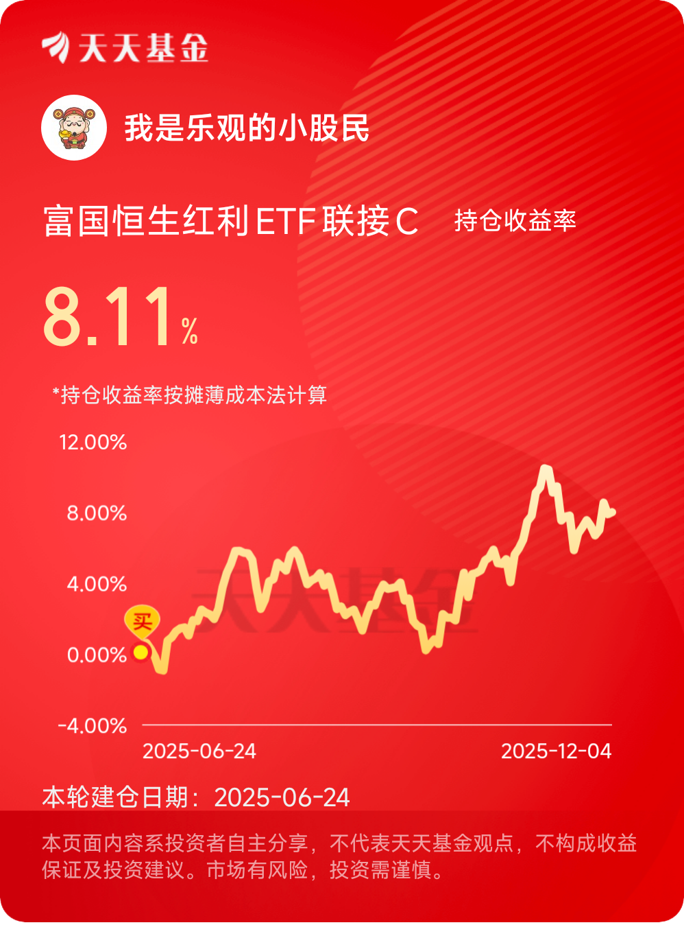 昨日又有收获$富国恒生红利ETF联接C$吃定港股红利,低波高息,入手不亏!