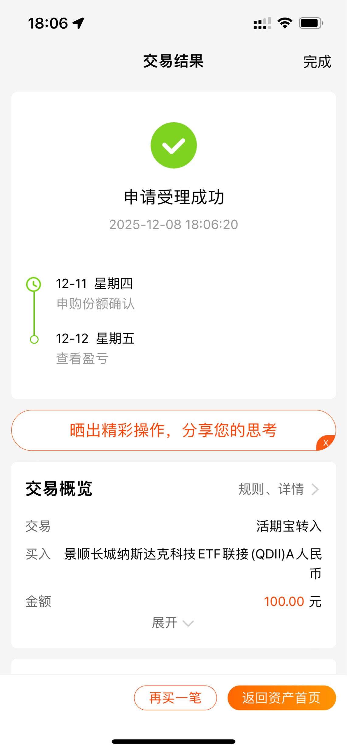 买基这么多年,总结出来在A股里技战术水平再高,都不如长线持有纳指,这个还能买不错啊,除了A还可以继续布局其它两个份额呢