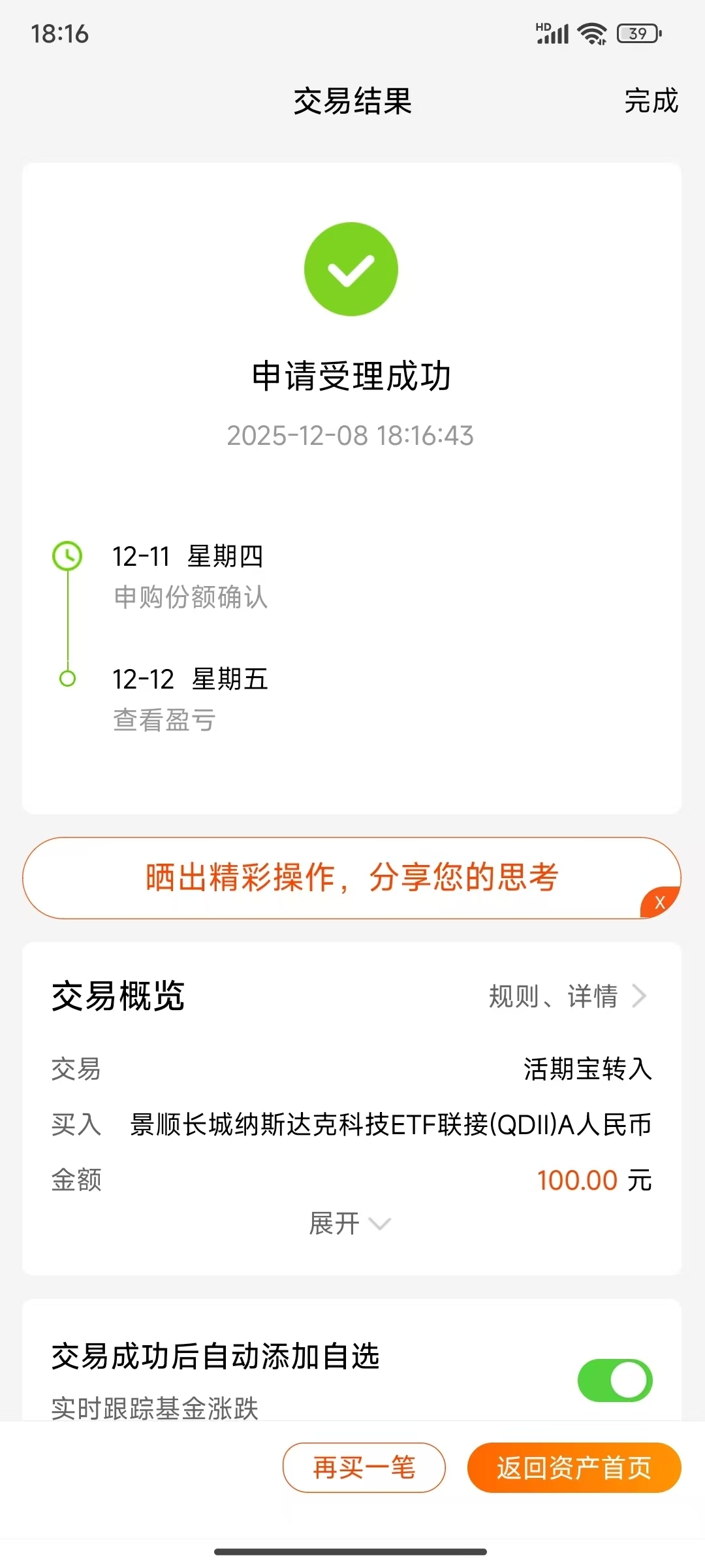 纳斯达克科技纯科技不混搭,巨头撑着增长底气。高波动适合定投,现在额度紧张还能上车挺难得,我就三个份额一起买