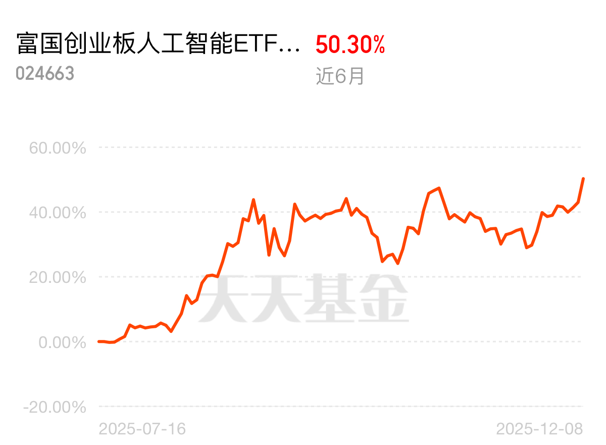 近期景顺长城纳斯达克科技联接A有点横盘,这边倒是继续入手富国创业板人工智能ETF联接C,连涨3日,近1周6%、1个月8%、3个月16%、6个月50%,各阶段都跑赢同类,AI主线里走势挺稳的。