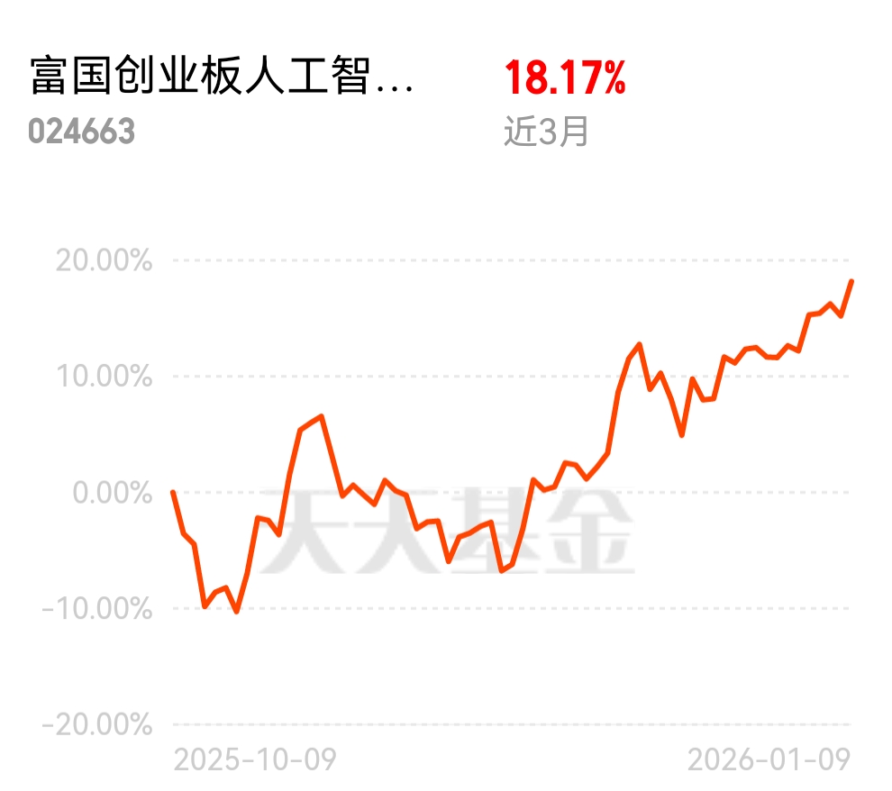 富国创业板人工智能ETF联接C又涨了,近3个月累计18%的收益,在同类中表现领先