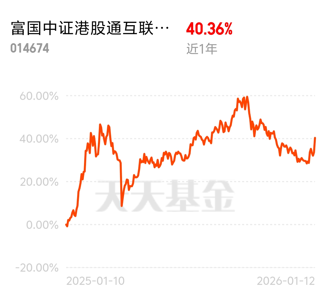 一边是富国中证港股通互联网ETF联接C,近2年涨70%、连涨2日、106亿规模,