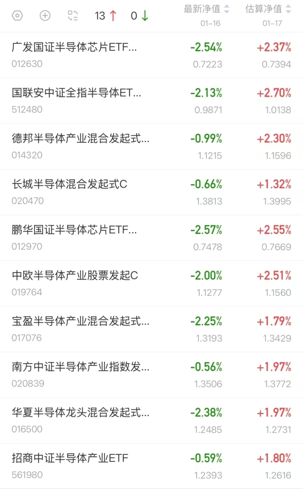 半导体基最新估值数据一览!