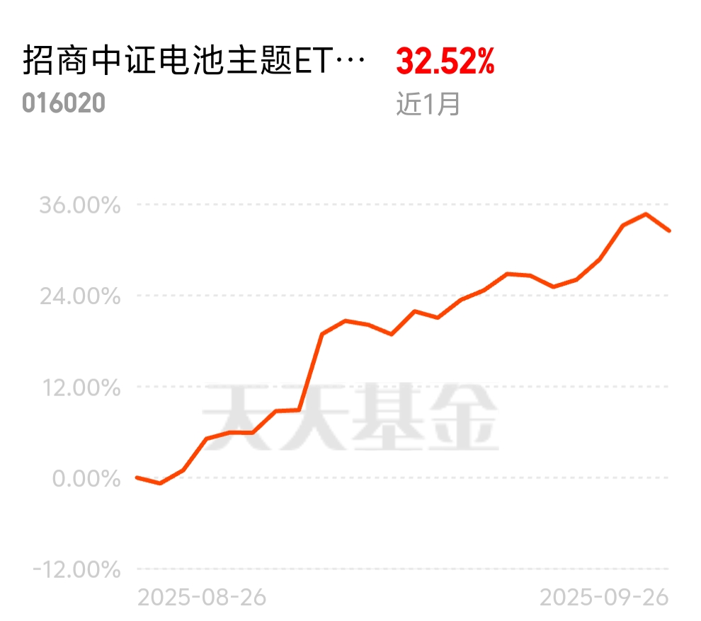 电池技术突破解决行业痛点,板块价值重估开始。招商中证电池主题ETF联接C近1个月32.52%,吃肉重估赚。$招商中证电池主题ETF联接C$