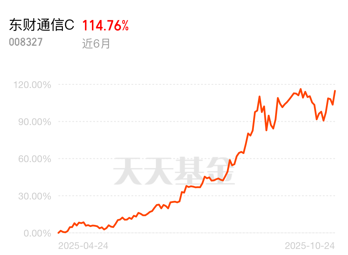 光模块龙头订单排到年底,CPO技术成了竞争核心,行情根本停不下来。西藏东财中证通信技术主题指数C近6个月114.76%,核心资产全包括,不调仓比主动基强多了。