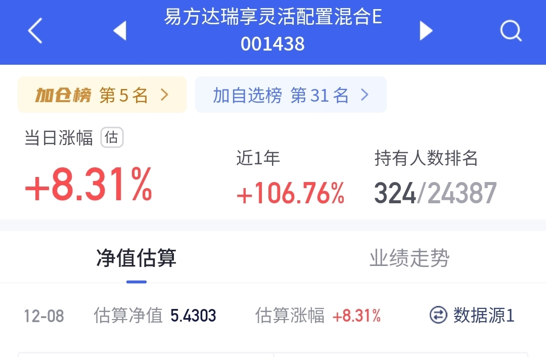 这支$易方达瑞享混合E$ 目前估值也涨超8个点,算是全面领涨其他板块了,近半年收益89.89%,这收益也是很不错了,年底赚钱效应有望持续;