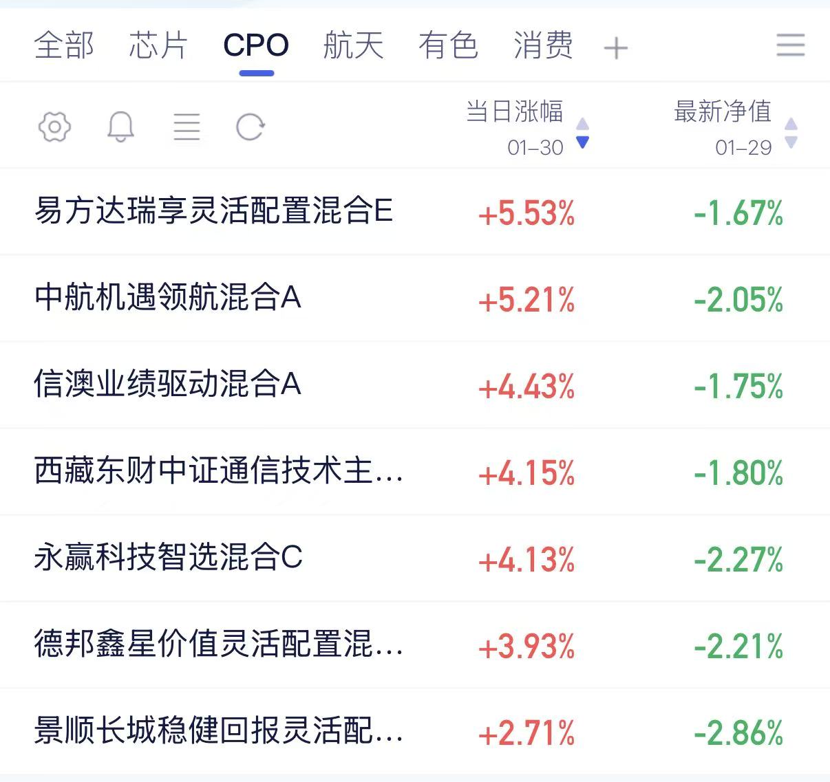 看样子是轮到CPO大涨!,最新估值如下;$易方达瑞享混合E(OTCFUND|001438)$涨幅前列