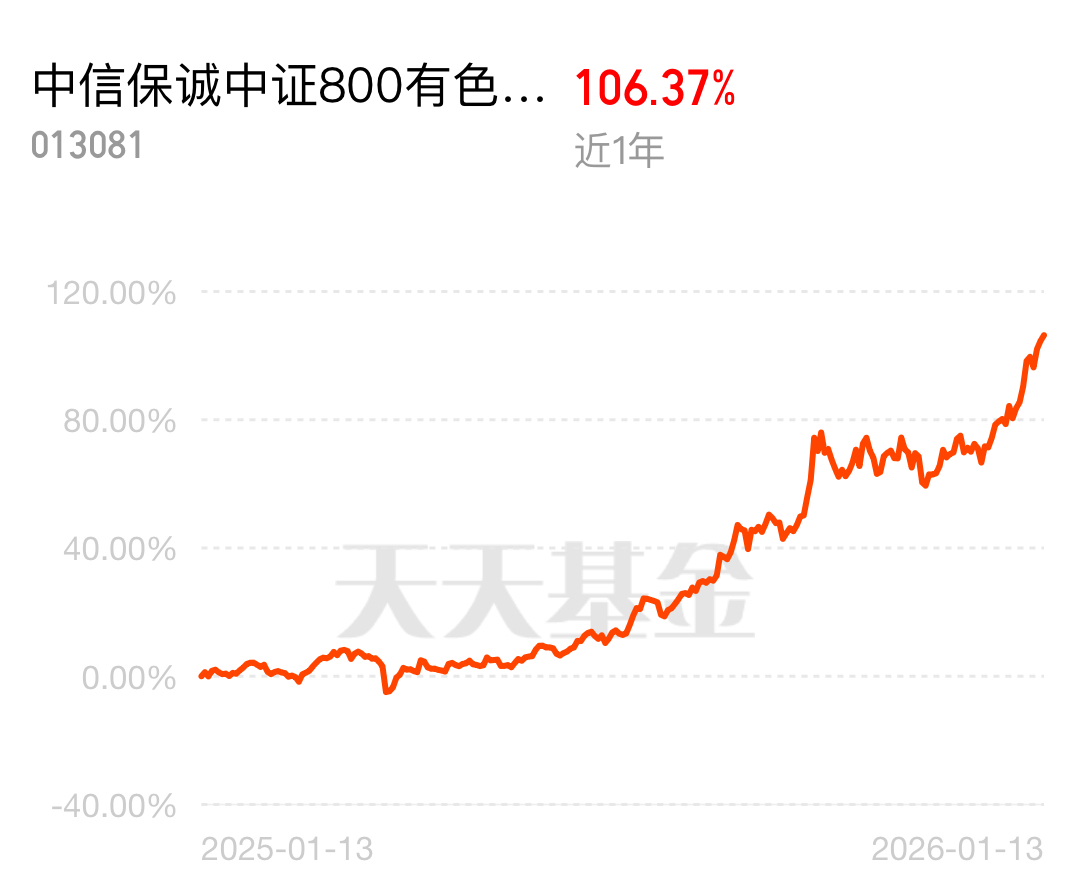 有色板块 2026 年盈利预测乐观,ROE 有望持续提升!中信保诚中证 800 有色指数 (LOF) C 近 1 年 106.37%,同类有色指数里近一周业绩最好,买弹性最好的才能分享盈利增长红利,别错过。