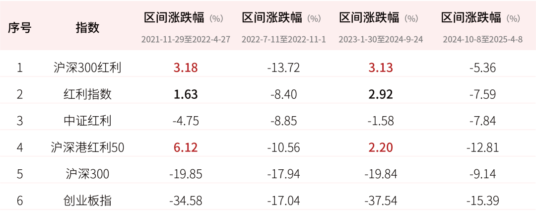 提及红利资产,多数人首先联想到的便是其抗跌防御的特性,而市场表现也确实印证了这类资产在弱市中的突出韧性。2021年末至今,上证指数经历了约4次深度调整,沪深300与创业板同步承压,但主流红利指数的跌幅显著小于市场平均水平,部分时段更实现逆势上涨。