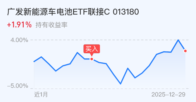 跟踪的新能电池指数这会看涨1.6%左右,昨天低吸了一笔可以吃肉了,我看趋势还没问题,我持仓不动。$广发国证新能源车电池ETF联接C(OTCFUND|013180)$