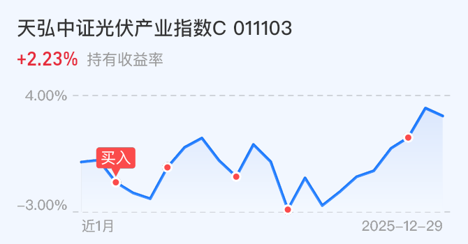 我加仓$天弘中证光伏产业指数C(OTCFUND|011103)$10000元!跟踪的中证光伏产业指数这会看跌0.8%左右,继续磨盘60日均线,这里只要稳在多条均线和缺口支撑上方,后面向上突破前期高点的动力还是很强的,而且光伏位置低,我重仓持基放安心一些。