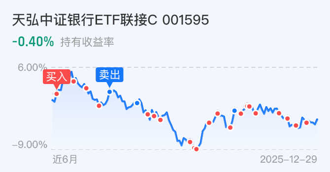 跟踪的中证银行指数这会看跌0.1%左右,磨盘20日均线,我持仓不动$天弘中证银行ETF联接C(OTCFUND|001595)$