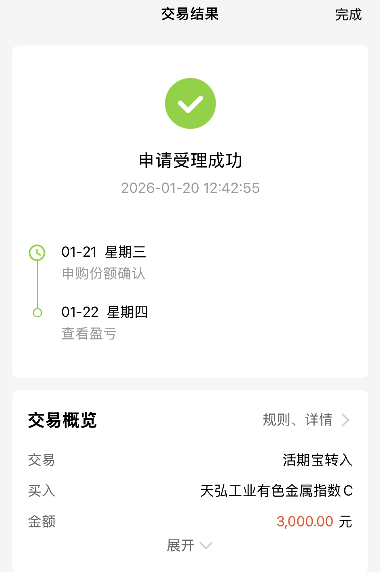 加仓$天弘工业有色金属指数C(OTCFUND|017193)$3000元!
