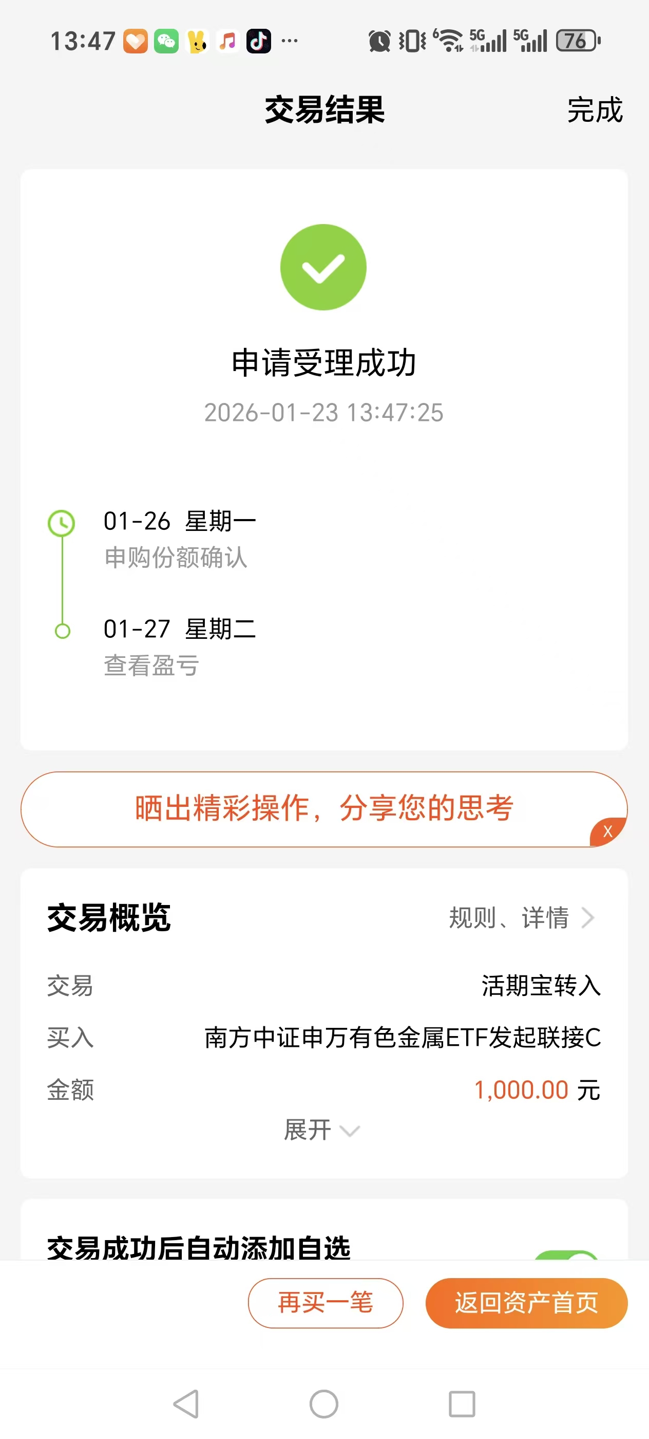 买入 $南方中证申万有色金属ETF发起联接C$ 1000元