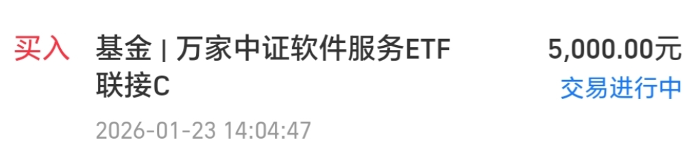 今天我买入$万家中证软件服务ETF发起式联接C(OTCFUND|018183)$5000块钱。