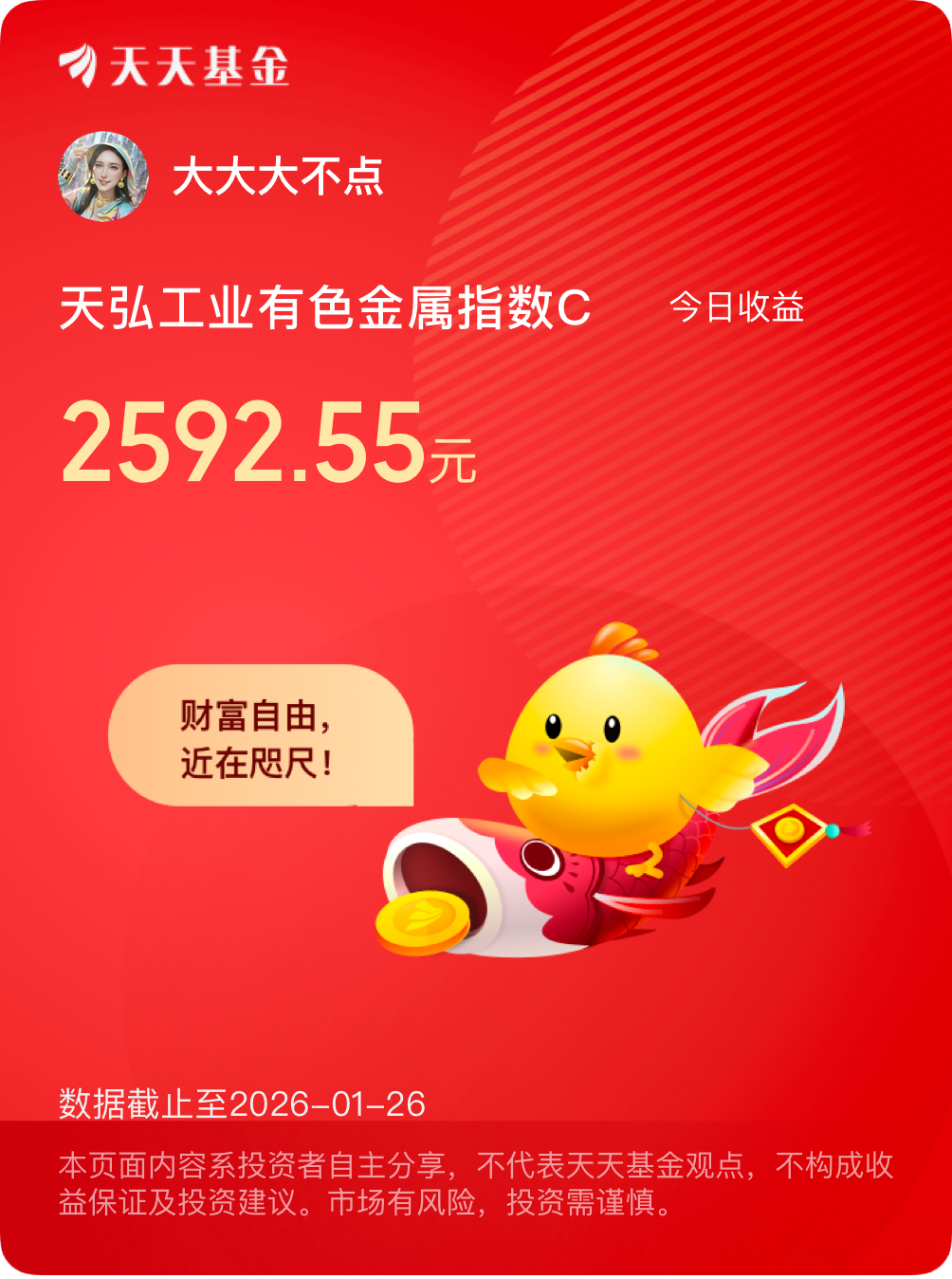 $天弘工业有色金属指数C[017193]$ #晒收益#
