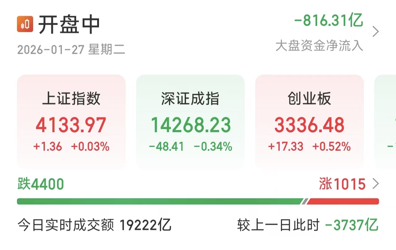 昨天大盘冲高回落,最终三大指数均是下跌收盘,今天盘中大盘一度再次跳水,上证指数最低跌至4101点,还是很令人担心的,出现这种情况,也是由于避险情绪仍在,人们对股市有所担心所致,不过A股很快探底回升,4100点附近再次表现出强大的支撑力,板块上看,人工智能/半导体/CPO等科技板块大幅上涨,赚钱效应明显回归。