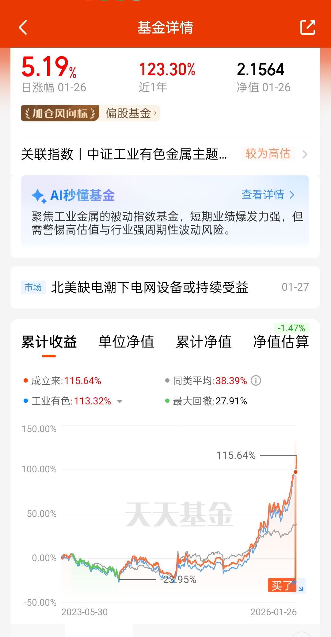 当有一致的长期的预期,而不是暂时的预期,需要抓紧时间上车。上周买的$天弘工业有色金属指数C(OTCFUND|017193)$继续上涨,今天有点像样的回调,再上车上足仓位。