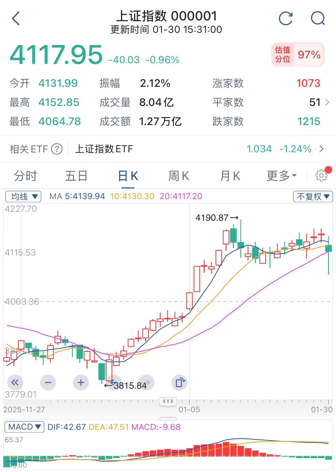 上证指数(跌0.96%,4117.95点)