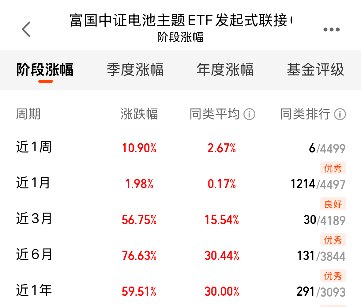 看好电池可以看我之前投过的 $富国中证电池主题ETF发起式联接C(OTCFUND|017223)$,一键布局电池全产业链龙头,可以全面跟上电池板块行情。近1周10.9%,近6月涨幅76.63%,业绩能打!