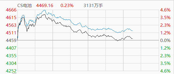兄弟姐妹们,早盘电池板块延续强势,中证电池指数一度冲高涨超4.5%并创下年内新高。虽然随后回落不少,但电池板块近期强势上攻,主线地位或进一步夯实。