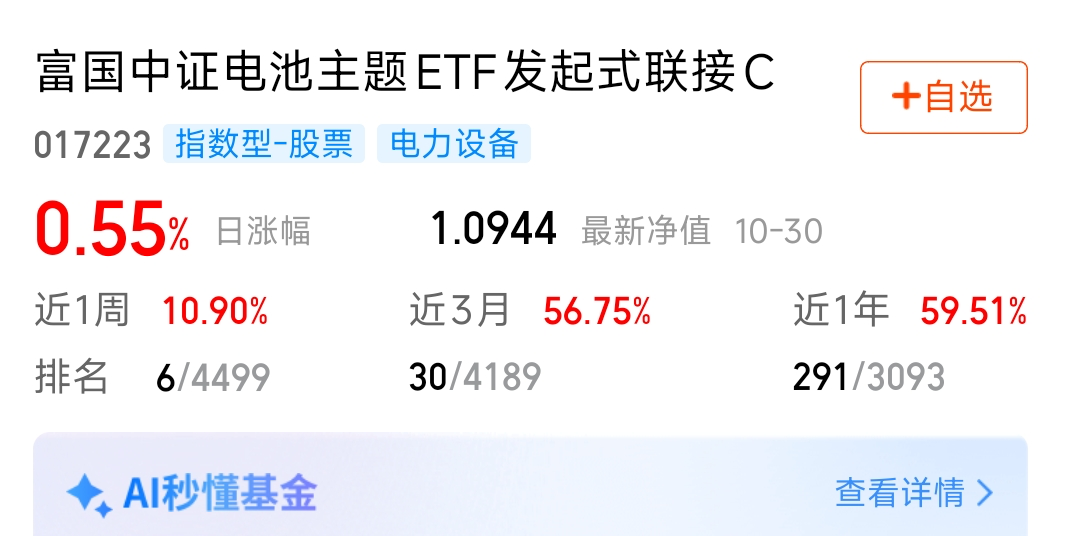 $富国中证电池主题ETF发起式联接C$ 市场电池的方向还是比较强的,今天这个继续跟一波,现在这个政策层面持续加码,工信部等多部门出台稳增长方案,明确支持锂电池产业发展,推动新能源汽车购置税优惠延续、加快公共领域电动化,并推进县域充换电设施建设,为电池需求提供长期保障。同时,反内卷”政策导向下,行业有望告别低价竞争,转向高质量发展,龙头企业将显著受益。长期来说电池的方向发展比较广阔,我今天追加这个方向。等待下周在说了!