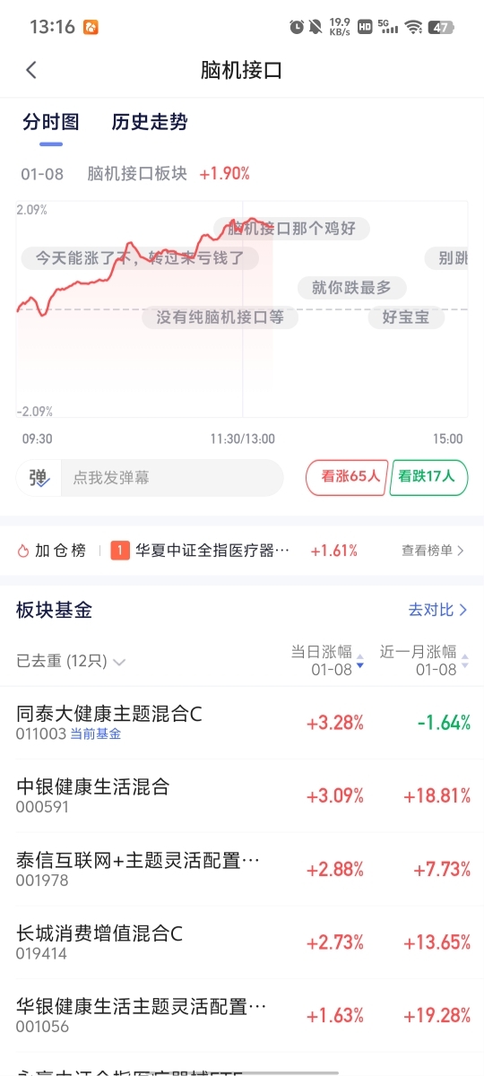 脑机接口医疗服务纳入四川医保,侵入式置入费 6583 元可报销,普惠性提升。赛道商业化再提速,同泰大健康(011003)今天大涨 2.82%,春季躁动就该买这种政策加持的基金!$同泰大健康主题混合C$