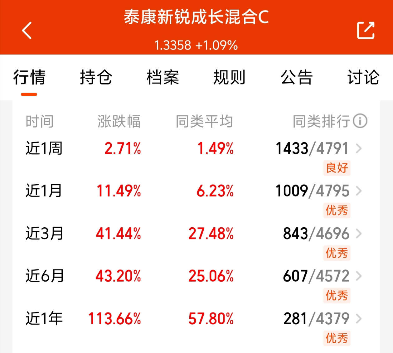 泰康新锐聚焦科技创新产业,持仓CPO这些核心领域,近一个月涨了11.49%,近三个月涨了41.44%,近一年涨幅达到了113.66%!每个阶段的表现都这么优秀,稳稳地跑在前面,确实让人眼前一亮。