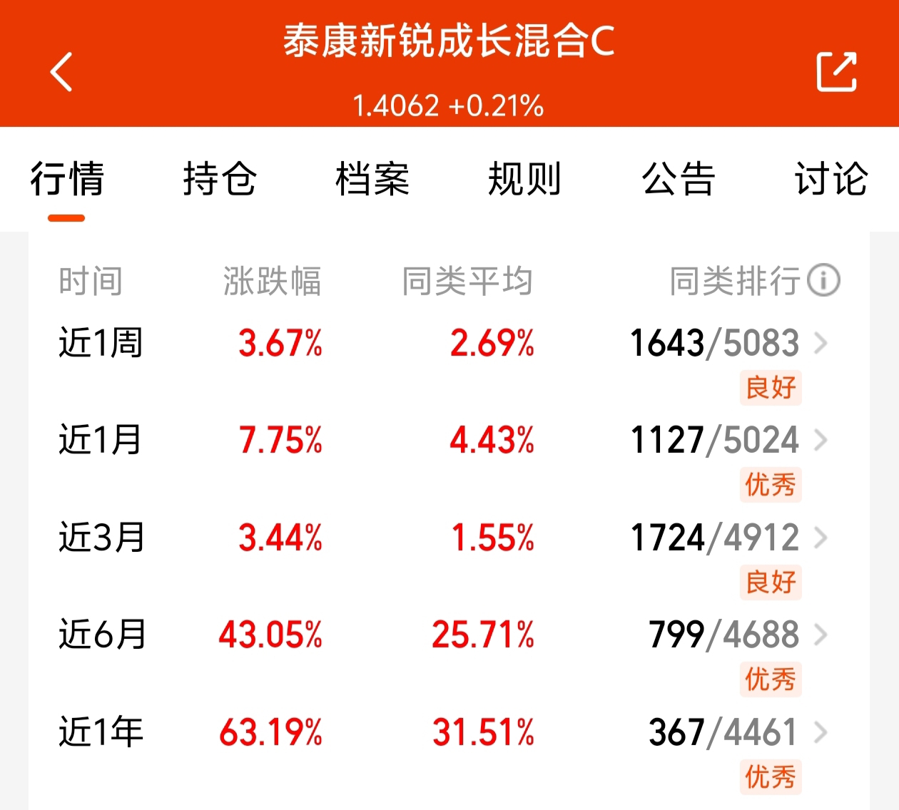 市场震荡时,真能看出好股票的抗跌实力!龙头股往往更稳,拿着也更安心。长期来看,AI和半导体绝对是黄金赛道,成长空间大、爆发力强。$泰康新锐成长混合C$ 最近表现真的亮眼——近6个月涨超43%,近一年更是超过63%!这样的成绩,确实称得上高成长、高爆发。看好未来趋势的话,这只基金值得关注一波!