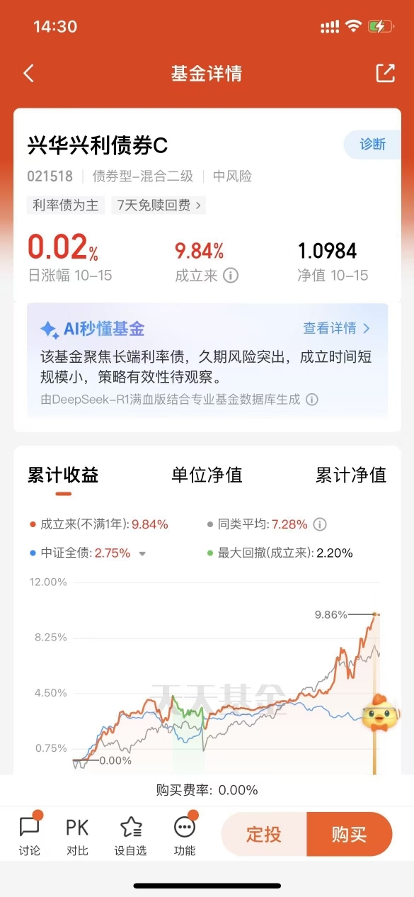 今年行情反复横跳,兴华兴利这款固收+倒是挺稳的。股市跌它不跟跌,债市回调影响也小
