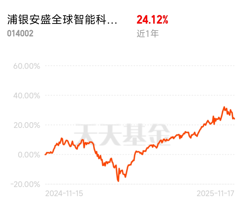 美股虽然有些波动,不过看着要开始回暖了,此时多布局几只增加收益啊,但很多美科技股都限额很严重,$浦银安盛全球智能科技(QDII)C$ 份额相对充足更好安排,且整体业绩也给力呢