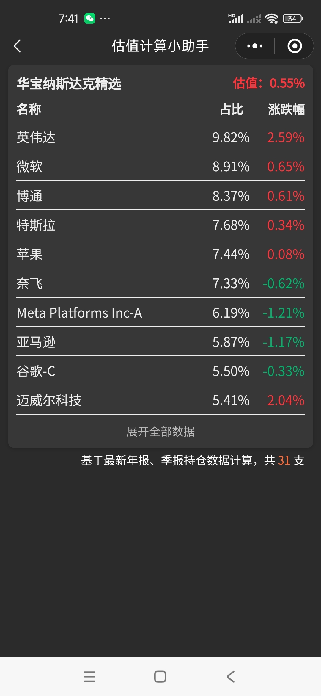 $华宝纳斯达克精选股票发起式(QDII(OTCFUND|017436)$ 收盘预估0.55