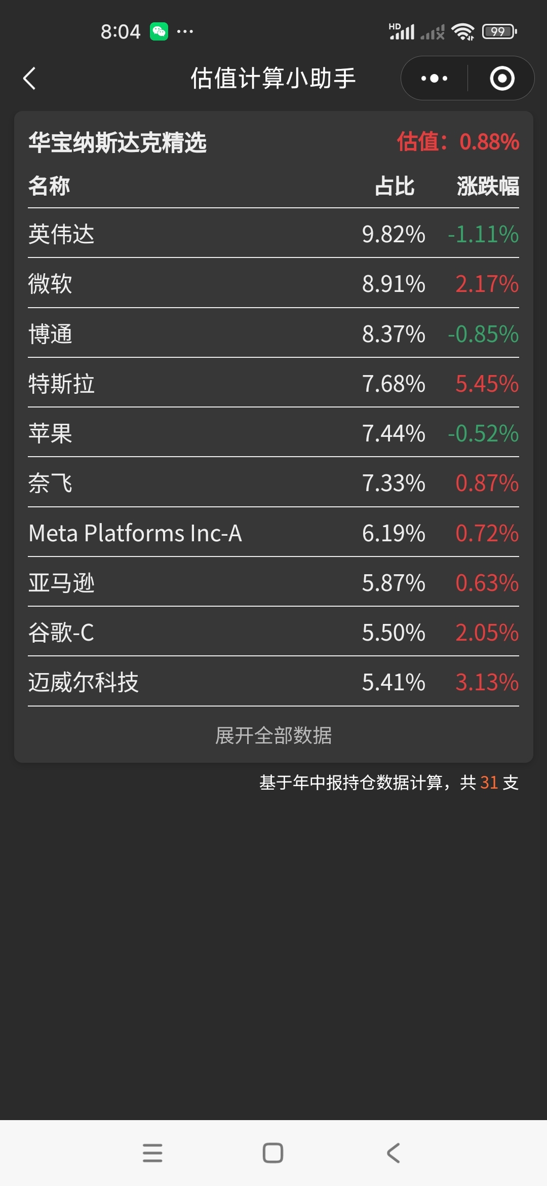 $华宝纳斯达克精选股票发起式(QDII(OTCFUND|017436)$ 昨晚预估0.88,累计预估1.4(4天)