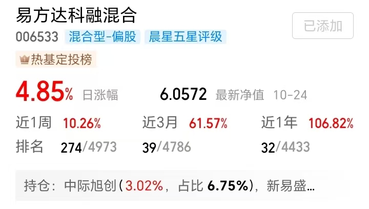 近期黄金受地缘局势及贸易摩擦缓和等因素影响走势显得略有震荡,而股市虽沪指创新高、三大指数高开,但轮动快、波动大。之前选单一赛道基金总折腾,这次想换稳的,易方达科融混合挺符合我的预期。它投科技、新能源、军工等领域,无单一赛道风险,回撤控得好、业绩稳,还有机构持有比较多,准备入手试试。