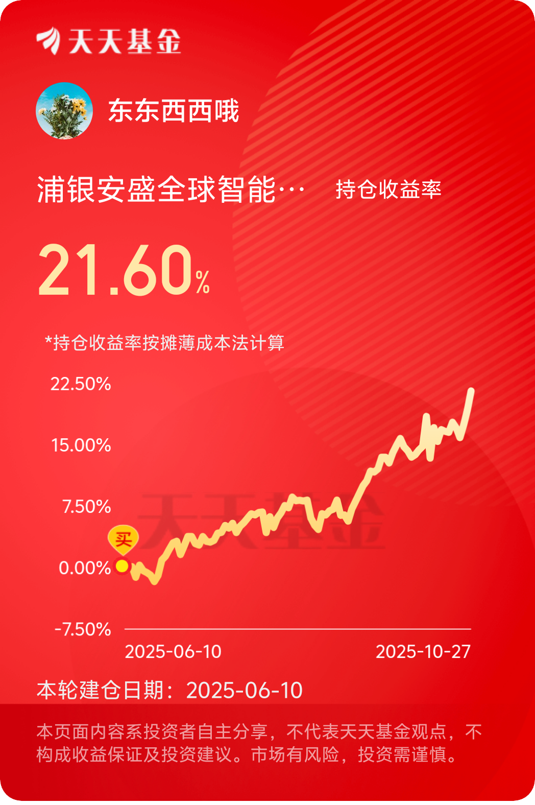 浦银安盛全球智能科技近一年涨超27%,加仓不限量还方便。$浦银安盛全球智能科技(QDII)C$ #晒收益#