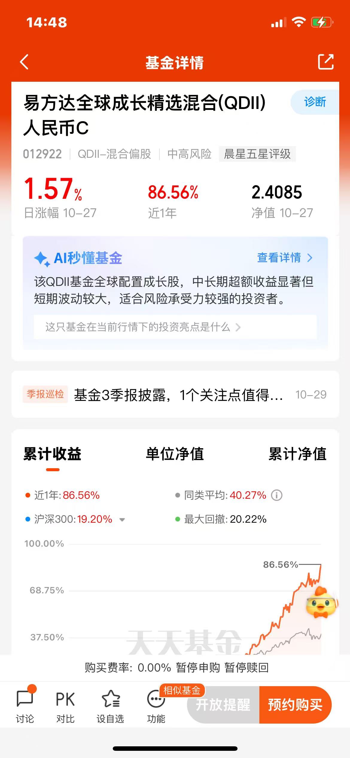 可以看出这支基金又突历史新高了,长期稳中向上,经理调仓灵活,真的很给力,拿着也安心!