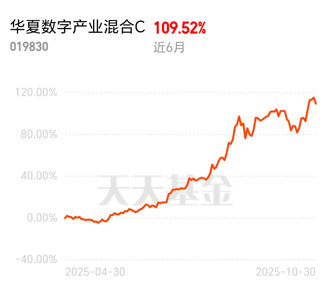 科技板块暂时回落,别担心长期趋势不变,近3个月收益53.64%,近6个月收益109.25%,现在估值也不高,计划着定投作为11月份的主力$华夏数字产业混合C$