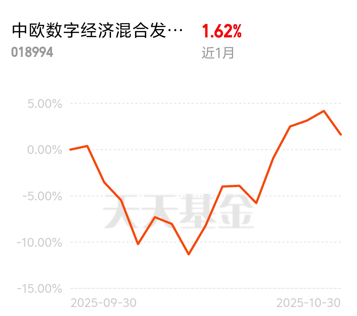 科技板块这两天在调整,身边同道有人开始卖了,我倒觉得是机会。“十五五”政策在,趋势错不了。中欧数字经济全链条覆盖,近一年178%涨幅亮眼,这只近1个月1.62%,领30元红包补仓,拿着等长期收益。