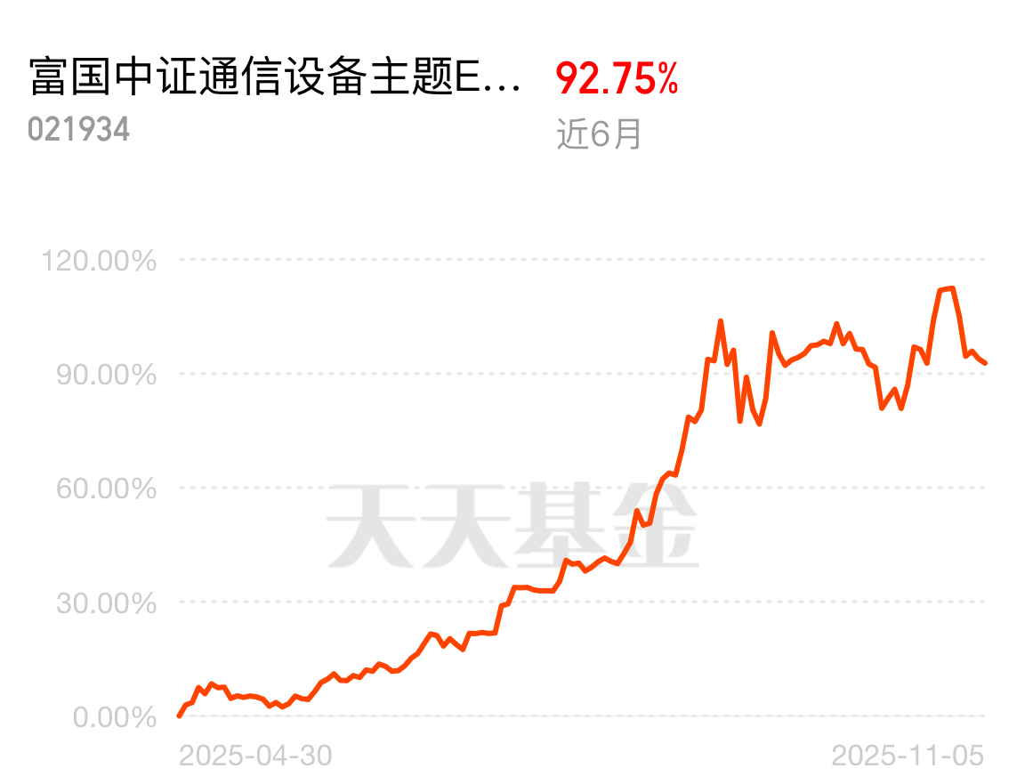 我持仓的华宝纳斯达克精选A热度高,但想更稳一点就配了富国中证通信设备主题ETF联接C,近6个月涨了94%,东数西算+光通信+云计算全踩中,回本最快只要66天!$富国中证通信设备主题ETF发起式联接C$