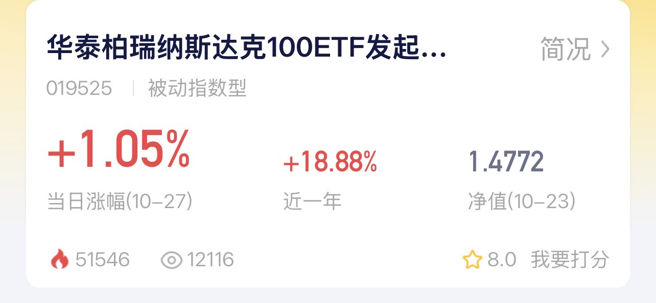 今天最大的好消息就是美国暂停加征关税,纳斯达克指数应声上涨。叠加美联储可能降息的预期,科技股环境改善明显。普通投资者想抓住这波机会,可以关注华泰柏瑞的纳斯达克基金,一键布局亚马逊、谷歌等公司,避免选股烦恼。C类份额持有7天以上免赎回费,平时用零钱慢慢买,既分散风险又能参与全球科技浪潮。