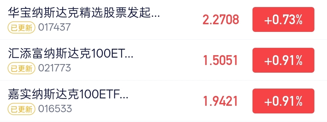$汇添富纳斯达克100ETF联接(QDII)E$ 今天也上涨了0.73,都很棒呢