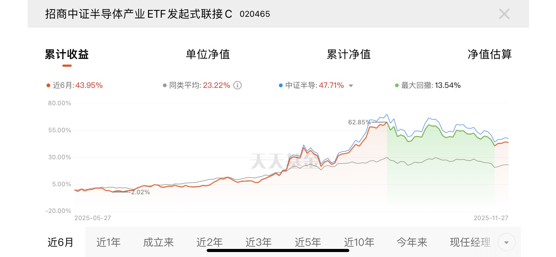 A股今天呈现V字拉升走势,午后行情逐步回暖,半导体板块凭借前期利好支撑,反弹表现亮眼。招商中证半导体产业ETF联接C业绩亮眼,近6个月收益达到43.95%,契合当下行业发展趋势,值得入手。