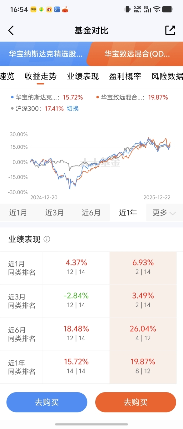 最近几个月真中邪了,持仓不知道搞到哪里去了,就不跟其他基金公司主动基对比,就跟华宝两只主动基金对比,你也是最差一个啊。