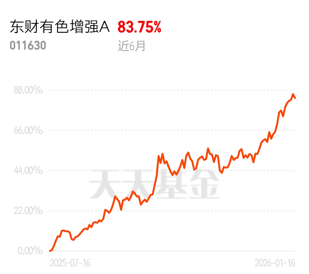 全球新能源汽车销量暴涨,带动铜铝需求,有色行情持续,CPO 却慢慢跌。东财有色增强 A 近 6 月 83.75%,同类最佳,真正的慢牛稳牛,从 CPO 转过来没白疼它!$东财有色增强A$