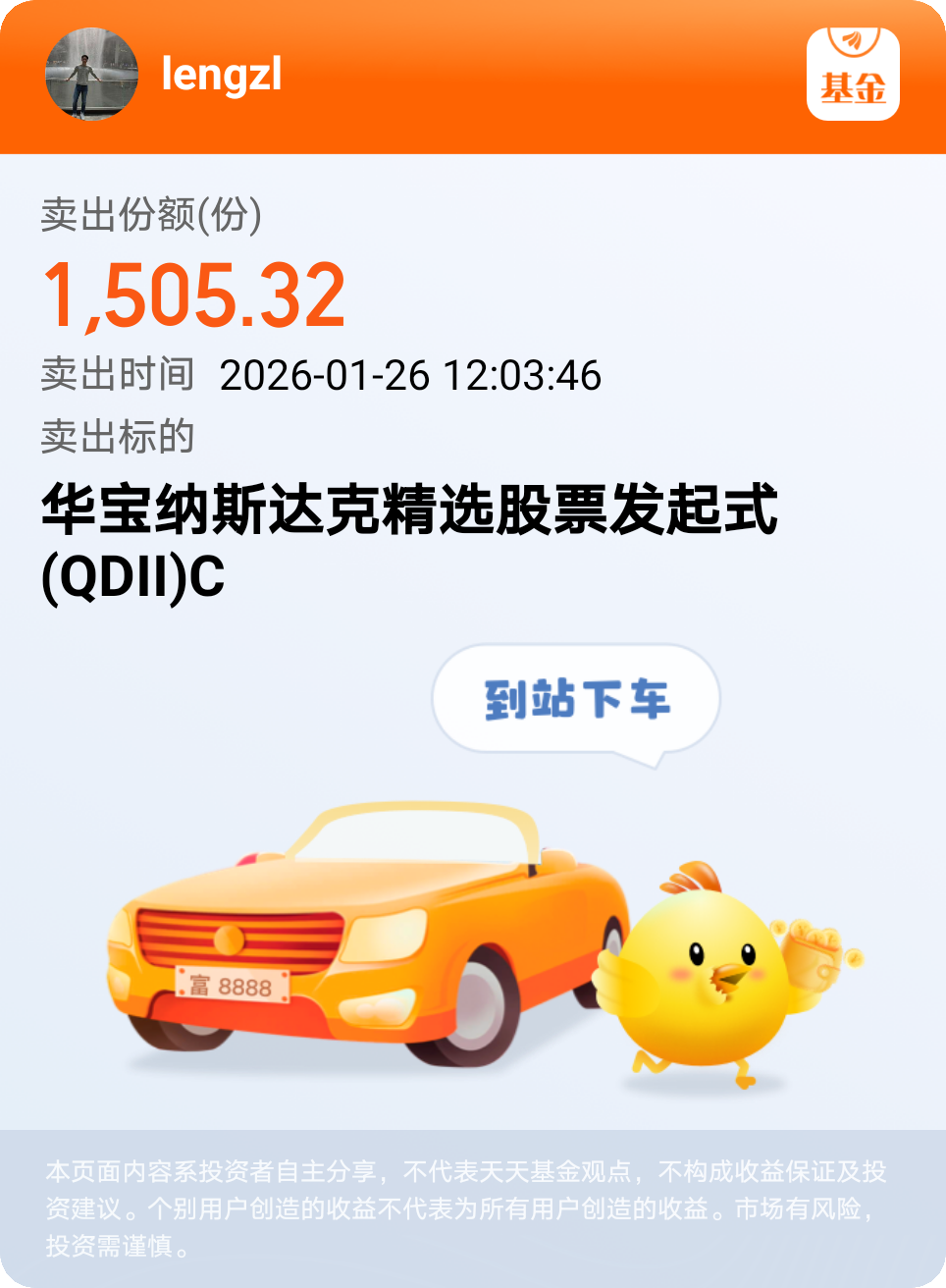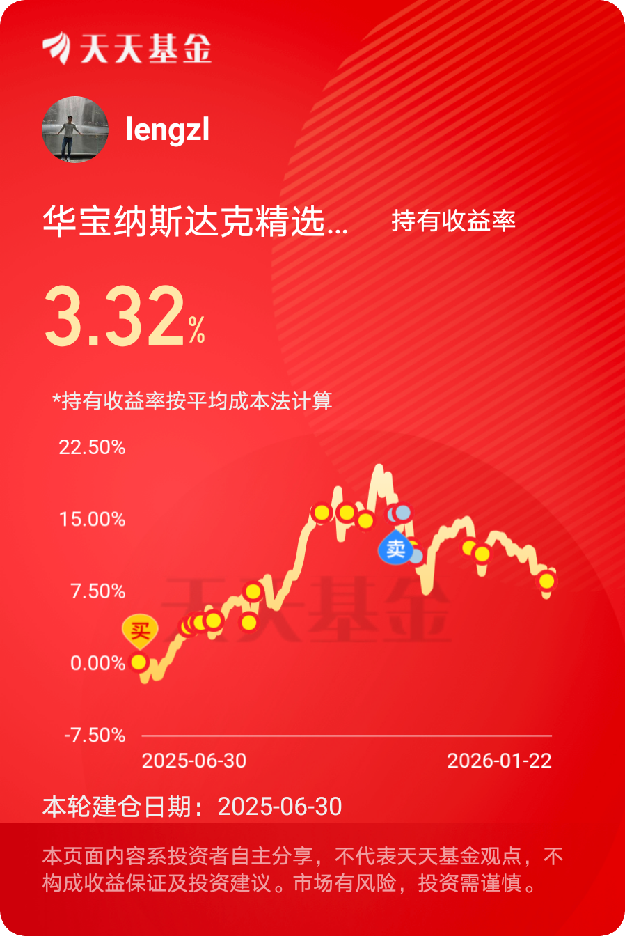 华邦纳斯达克已经下跌7%,最近的长势也不好,所以转出一半3000元,放到活期宝准备换一个板块黄金和白银涨势明显。
