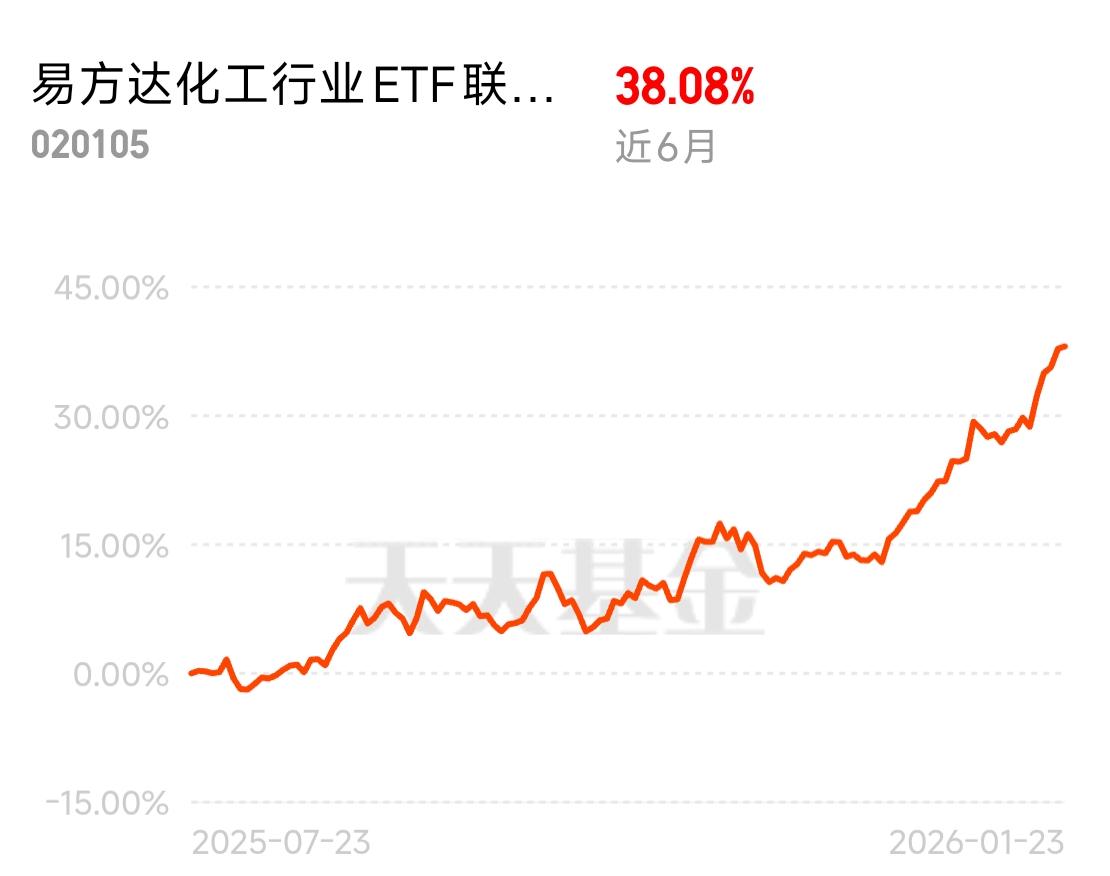 瞅准化工赛道的朋友看过来,行业现在基本面超扎实,价格和需求双向好,$易方达化工行业ETF联接C$ 近 6 月拿下 38.08% 收益,紧跟行业龙头,分享化工发展的红利超轻松