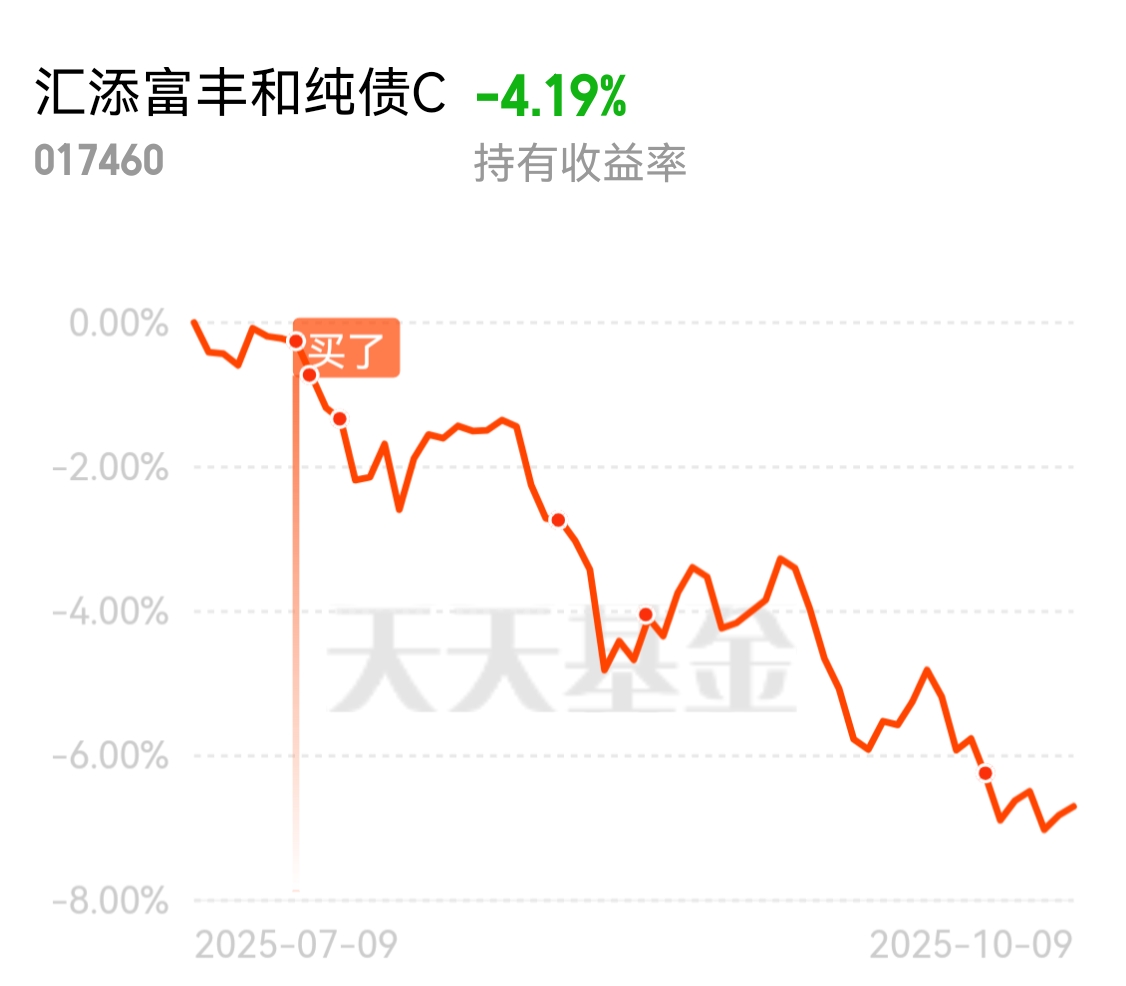 今天债市多少也算是晚霞了!重仓30年国债的基金汇添富丰和纯债债券C爆蛋13个,目